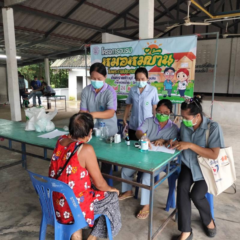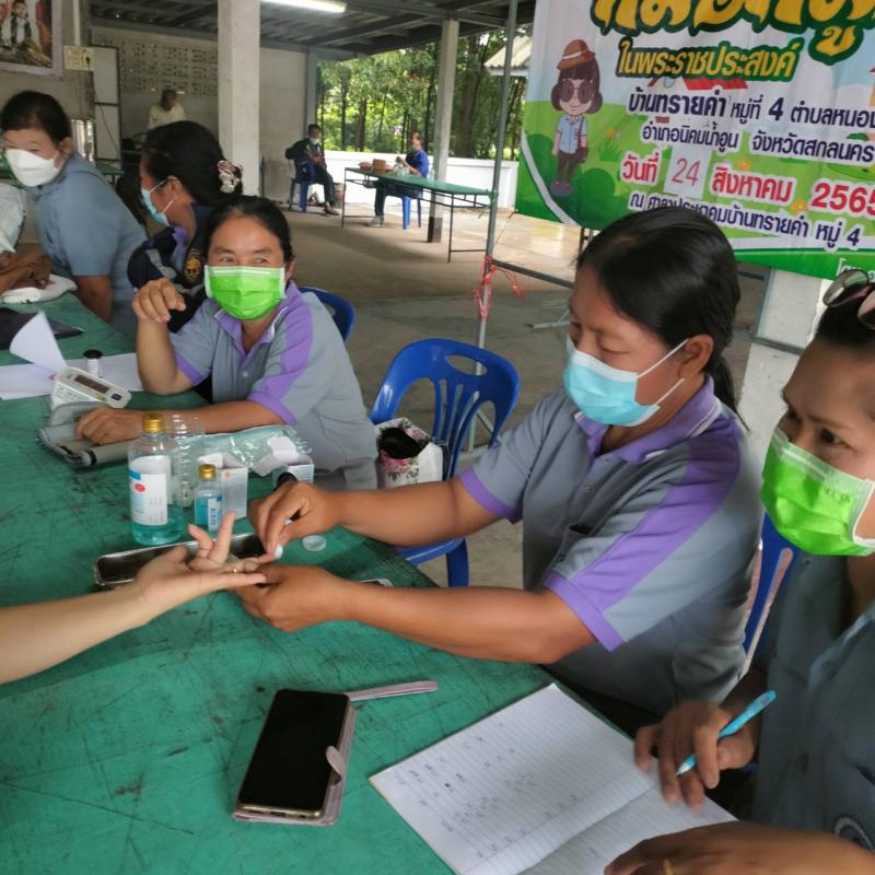 โครงการหมอหมู่บ้าน วันที่ 24 สิงหาคม 2565 ณ ศาลาประชาคมบ้านทรายคำ หมู่ 4 ตำบลหนองปลิง อำเภอนิคมน้ำอูน จังหวัดสกลนคร